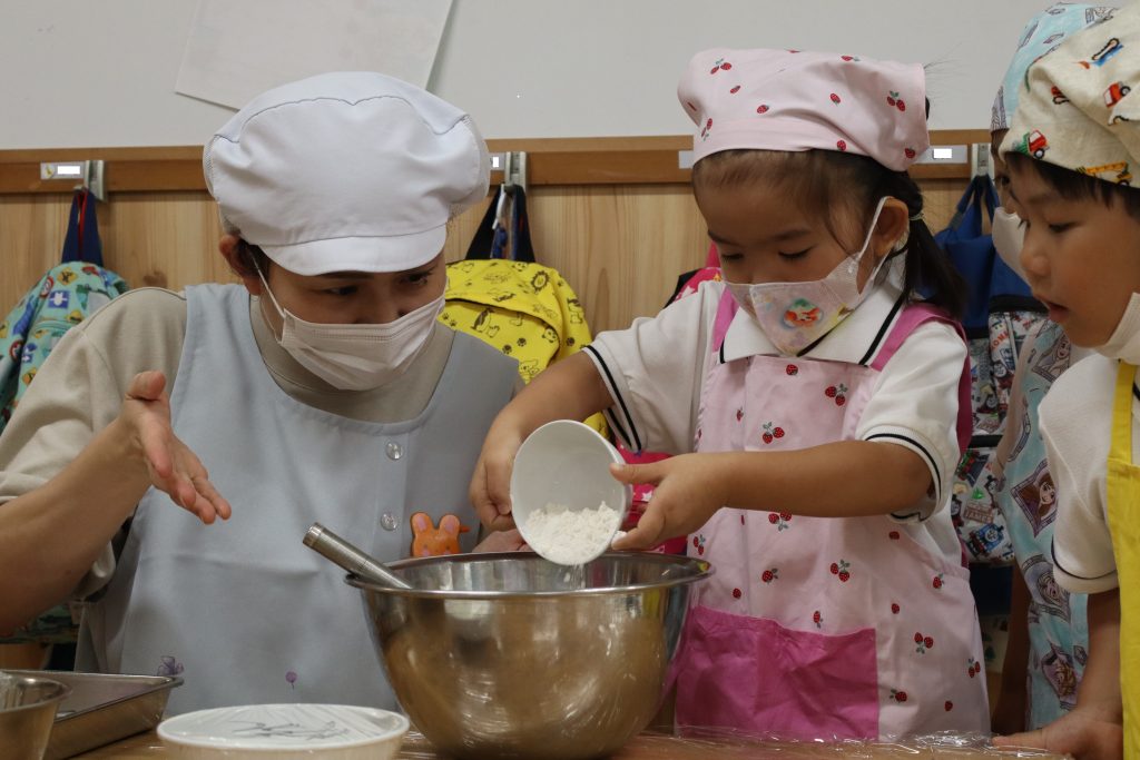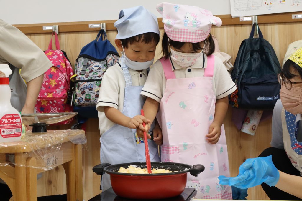 3歳児で、今が旬のりんごを使って、『りんごジャムクレープクッキング』をしました