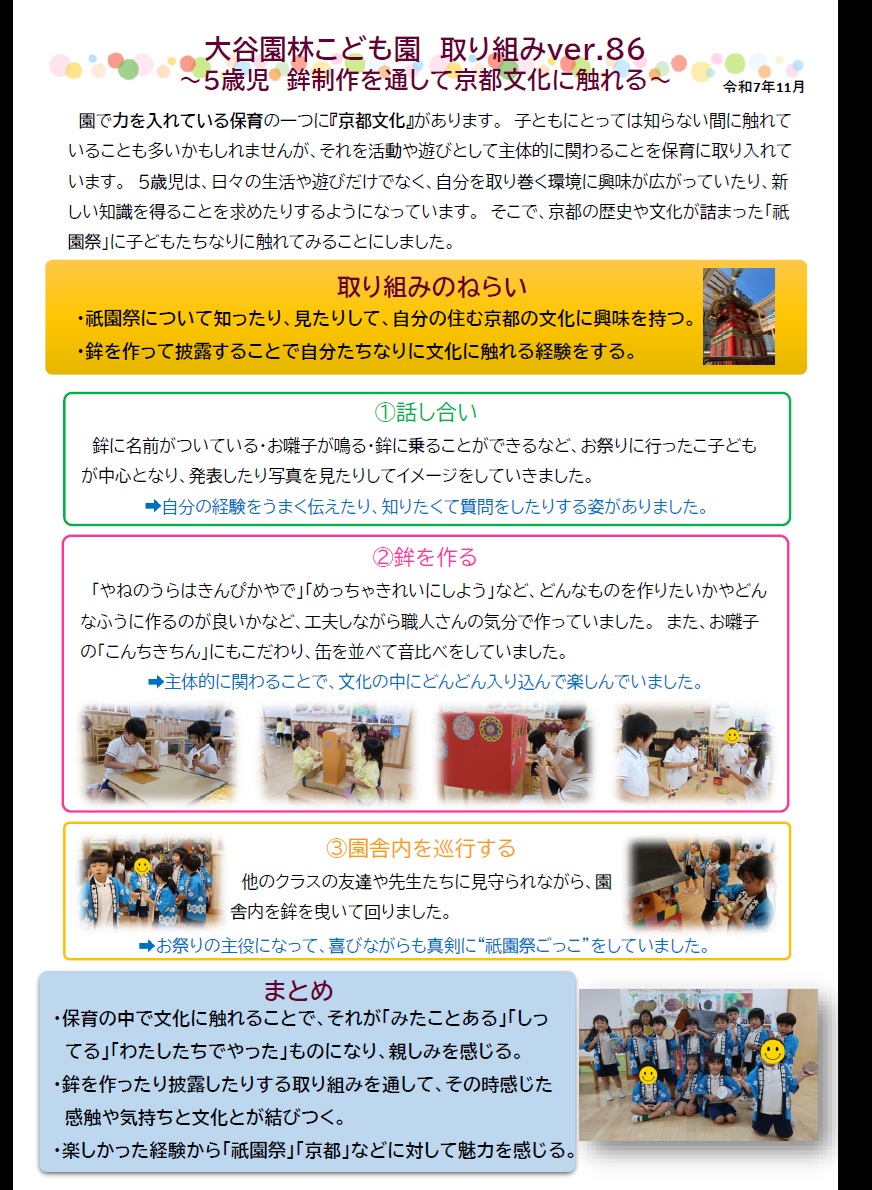 大谷園林こども園では毎月取り組みをご紹介しております。