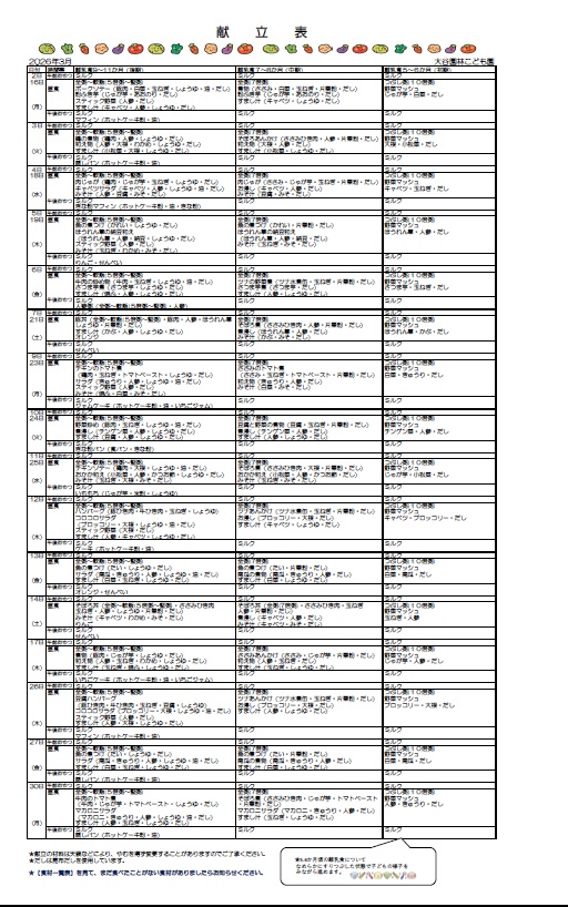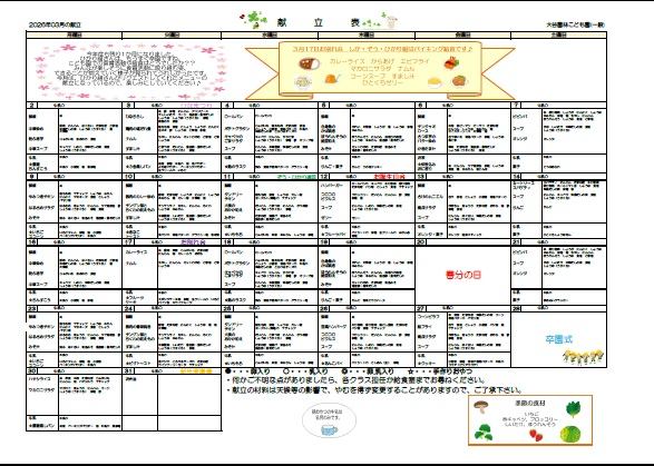 3月献立表